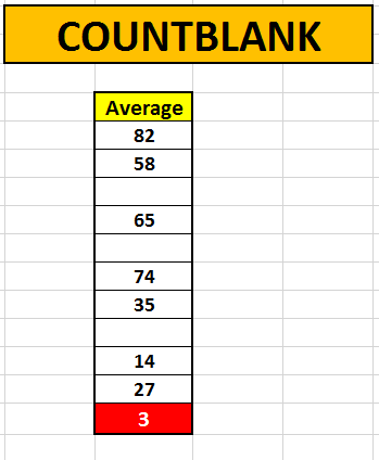 Countblank का use करके हम Blank Cell को Count कर सकते है, Example निचे दिया गया है :-