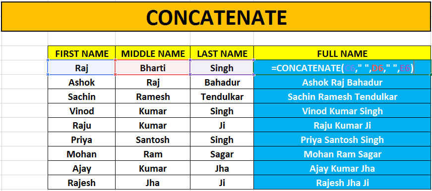 Concatenate Formula का use हम 2 या 2 से अधिक Text को जोड़ने के लिए करते हैं |