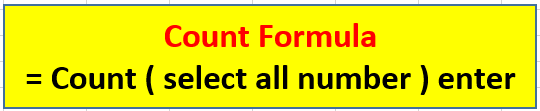 Count Formula का प्रयोग हम Numerical Number को Count करने के लिए करते हैं, इसका Example निचे दिया गया हैं |