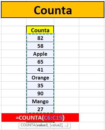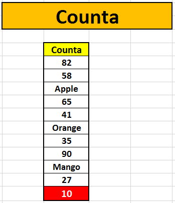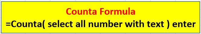Counta Formula का प्रयोग हम Numbers or Text दोनों को Count करने के लिए करते हैं, इसका उदहारण निचे दिया गया हैं |