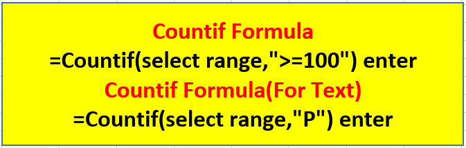 अगर हमे 100 से ज्यादा या कम या बराबर कोई भी Numbers Count करना हो तो हम Countif फार्मूला का use करते हैं |