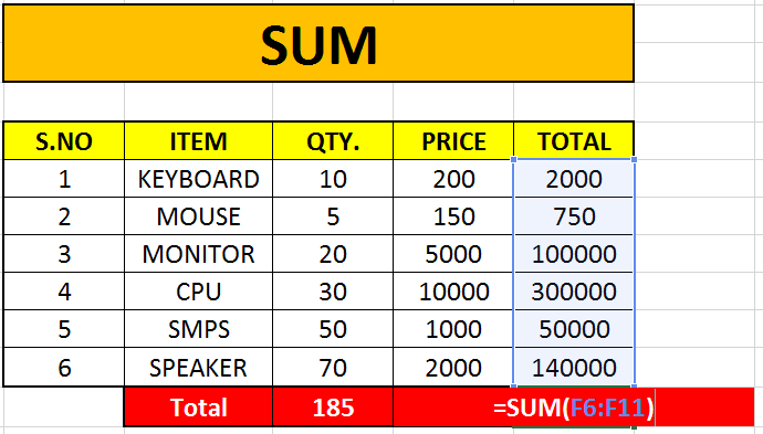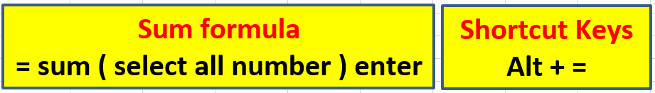 Sum Formula का प्रयोग हम Numbers को जोड़ने के लिए करते है, आप निचे Example देख सकते है |